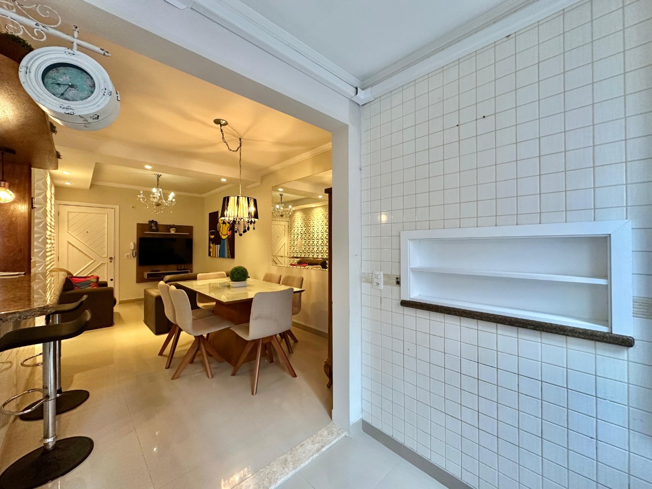 02 dormitórios 01 suíte Reformado/Mobiliado Lavanderia na sacada Banho social Beira Mar Sol da tarde nos quartos e sala 96 m² de área total 72 m² de área privativa 01 Box