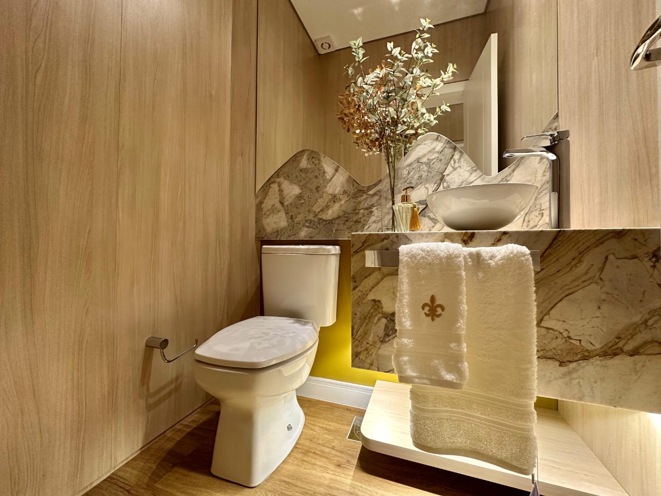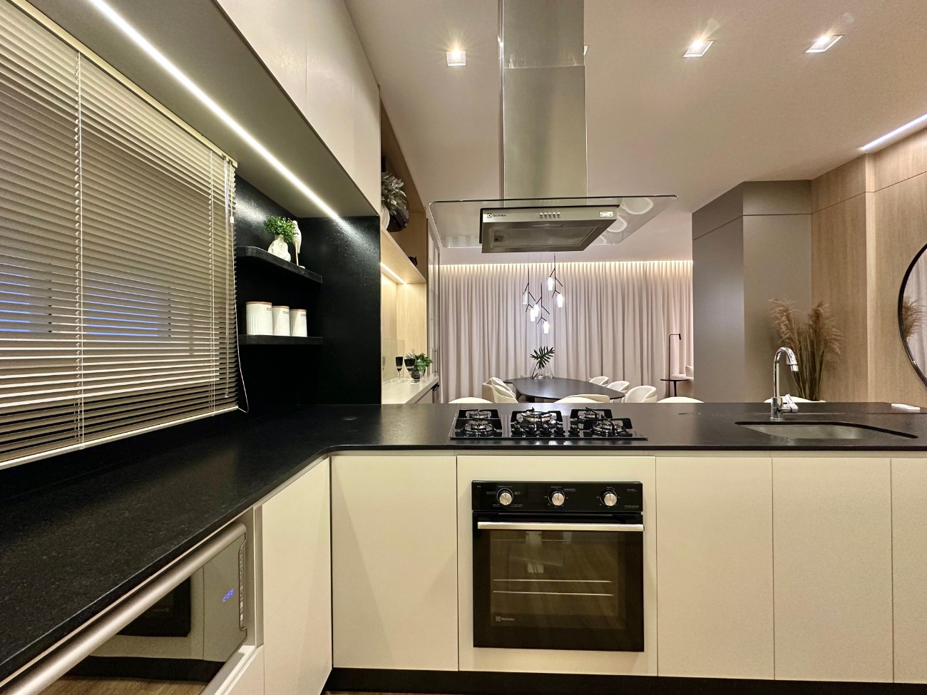 03 Suítes Lavabo Banho Social Sacada de frente Pé direito diferenciado Mobiliado Decorado 160 M² área privativa 02 box