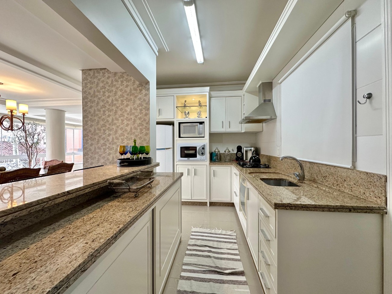 Apto com 204 m² total 3 Dormitórios, sendo 1 suíte Living em 2 ambientes Cozinha americana lavabo Banheiro Social Finamente mobiliado e decorado Área de Serviço Sacada com Churrasqueira Climatizado Frente oeste 02 box Deposito
