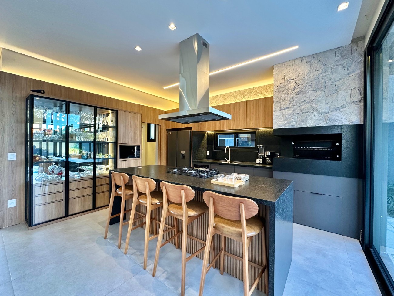 Casa com 211 M² Lote com 271, 91 M² Mobiliada e decorada 04 suítes independentes 4 banheiros Lavabo Cozinha com Churrasqueira Sala com Lareira à lenha Lavanderia / Dispensa Rouparia Piscina IGUI revestida com pastilha Esquadrias em PVC automatizadas