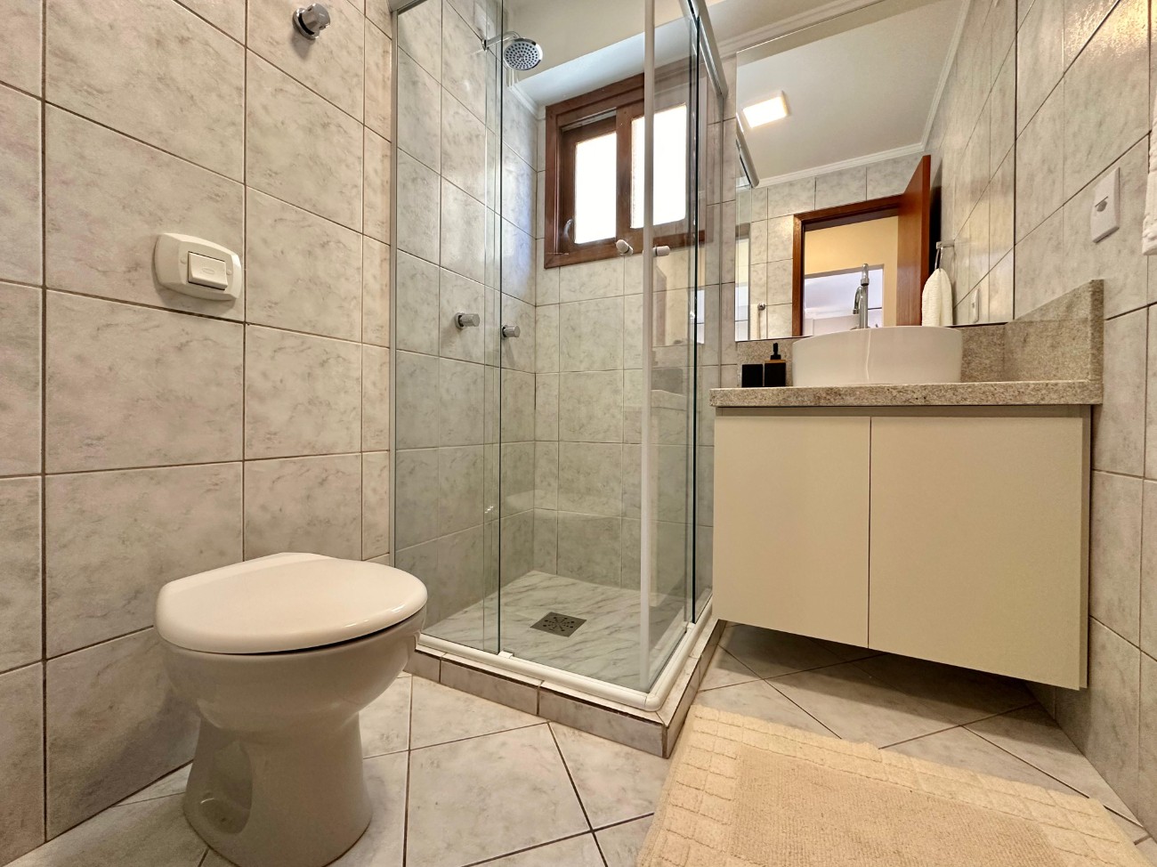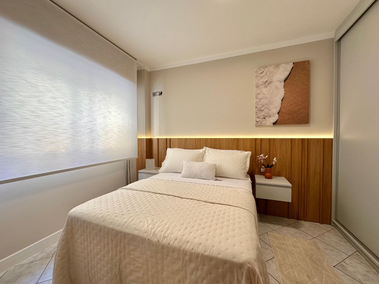 2 dormitórios 01 suite Sacada de frente e c/ churrasqueira 3º andar 90 M² privativo Mobiliado e decorado Living estar e jantar gigantesco Cozinha americana grande Espera para agua quente e split 03 orientações solares (Norte/Oeste/Sul) 01 Box térreo p/ carro 3 quadras do mar.