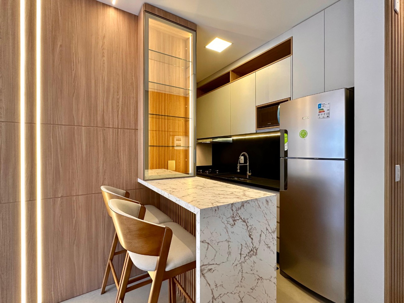 02 Dormitórios ( 01 suíte ) Banheiro social Mobiliado e Decorado Frente Leste Pronto para uso 86 M² área total 01 Box Para carro